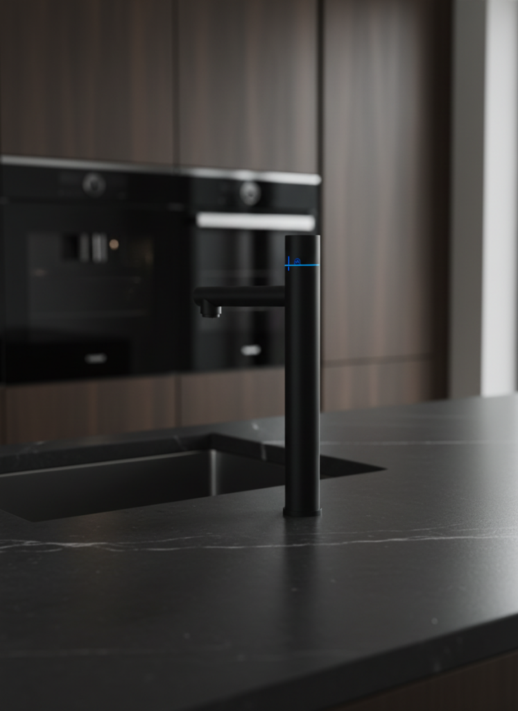 The BRITA C-Tap is an under-counter mains-fed system delivering chilled still, chilled sparkling, and ambient water through an integrated tap installed alongside existing kitchen taps, with no above-counter footprint beyond the tap itself. This makes it the correct specification for Saudi office fit-outs where kitchen and pantry design standards prohibit visible appliances on the worktop, a common requirement in the premium commercial real estate projects characterising Saudi Arabia’s Vision 2030 development pipeline.